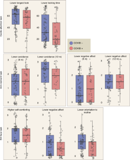 This study included 77 COVID+ infants and 157 COVID- infants assessed at 6 and/or 12 months. Outcomes were based on maternal self-report, observed infant behavior and brain fMRI.