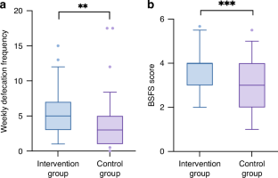 After the intervention, the treatment success rate in the intervention group was significantly higher than that in the control group (83.1% vs. 63.6%, P = 0.006). The intervention group demonstrated significantly higher weekly defecation frequency (4.99 ± 2.88 vs. 3.71 ± 2.86, P = 0.002) and Bristol Stool Form Scale (BSFS) scores (3.75 ± 1.04 vs. 2.99 ± 1.17, P = 0.002) compared to the control group. There were significant differences in the gut microbiota, and the intervention group had a higher diversity of gut microbiota Alpha (P = 0.047) and a higher relative abundance of Lacticaseibacillus, Bifidobacteriaceae, Parabacteroides_B_862066; while Erysipelatoclostridium and Eggerthella had lower relative abundance.