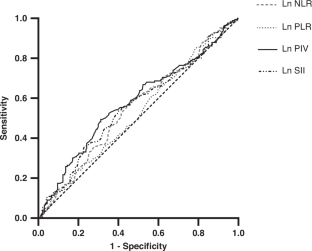 NLR (p-trend = 0.010), PIV (p-trend = 0.004) and SII (p-trend = 0.015) were positively associated with BMD increments, whereas PLR was not. ROC curve analysis showed that PIV (AUC = 0.58, 95% CI 0.52–0.64) and SII (AUC = 0.56, 95% CI 0.50–0.62) can predict low BMD, with PIV having the highest ability to predict. PIV was positively associated with osteocalcin and 25⁃(OH)D, whereas SII was positively associated with osteocalcin only.