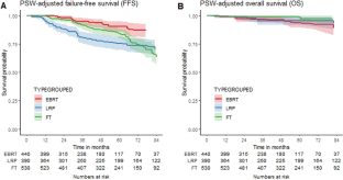 At baseline, radical patients had higher PSA (10.3 versus 7.9) and higher-grade disease (31% ISUP 3 versus 11%) compared to focal patients. After PSW, all covariates were balanced (SMD < 0.1). 6-year weighted FFS was higher after radical therapy (80.3%, 95% CI 73.9–87.3) than after focal therapy (72.8%, 95% CI 66.8–79.8) although not statistically significant (p = 0.1). 6-year weighted OS was significantly lower after radical therapy (93.4%, 95% CI 90.1–95.2 versus 97.5%, 95% CI 94–99.9; p = 0.02). When compared in a three-way analysis, focal and LRP patients had a higher risk of treatment failure than EBRT patients (p < 0.001), but EBRT patients had a higher risk of mortality than focal patients (p = 0.008).