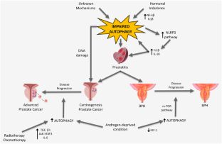 The present review explored the autophagy pathway in prostate-related dysfunctions, focusing on prostate cancer (PCa), benign prostatic hyperplasia (BPH) and prostatitis.