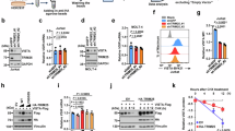In order to explore the effect of TRIM28 in regulating PD-L1 transcription, we analyzed the transcriptome of TRIM28 overexpressing G.C. cells by RNA-seq (Fig. 4a–c). Gene Ontology (GO) analysis revealed that TRIM28 regulates genes participated in the immune response, cytokine-mediated signaling pathway, and phosphorylated modifications (Fig. 4b). Furthermore, KEGG pathway analysis revealed that TRIM28 regulates several cancer-associated pathways such as the PI3K-AKT, TNF, and PPAR pathways (Fig. 4c). Our results revealed that the PI3K-AKT-mTOR signaling pathway was significantly activated in cells overexpressing TRIM28, as indicated by increased levels of p-4E-BP1, p-S6K1, and p-mTOR (Fig. 4d). In contrast, TRIM28 knockdown markedly diminished the mTOR pathway activity (Fig. 4e). To investigate whether mTOR plays a role in TRIM28-mediated regulation of PD-L1 expression, we used the mTOR-specific inhibitor rapamycin. Results showed that rapamycin prevented the TRIM28-mediated increase in PD-L1 expression (Fig. 4f), suggesting that mTOR signaling partially mediates TRIM28 functions to induce PD-L1 expression. In addition, rapamycin treatment markedly reduced the tumor burden in immuno-proficient mice bearing TRIM28-expressing tumors (Fig. 4g–i).