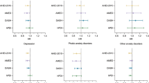 The RCS analyses identified evidence of nonlinear associations between DII and EDII scores with ACD, AD, sleep disorder, stroke, anxiety, and depression (Fig. 2B). In multivariable-adjusted models, we found a positive association for each deviation increase in DII score with risk of ACD (hazard ratio [HR], 1.039 [95% CI 1.011–1.068], corrected P = 0.009), sleep disorder (HR, 1.036 [95% CI 1.013–1.060], corrected P = 0.004), stroke (HR, 1.020 [95% CI 1.002–1.038], corrected P = 0.044), anxiety (HR, 1.039 [95% CI 1.024–1.054], corrected P < 0.001), depression (HR, 1.036 [95% CI 1.019–1.054], corrected P < 0.001) and EDII score with risk of ACD (HR, 1.090 [95% CI 1.031–1.154], corrected P = 0.002), sleep disorder (HR, 1.079 [95% CI 1.036–1.123], corrected P < 0.001), anxiety (HR, 1.042 [95% CI 1.024–1.061], corrected P < 0.001), and depression (HR, 1.036 [95% CI 1.014–1.058], corrected P < 0.001) (Fig. 3 and sTable 7).