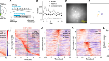 Over the following period of ~5 weeks (Fig. 2A), the NAc Ca2+ responses kept evolving, which were compared and contrasted under four stages (Fig. 2B): i) When mice first acquired sucrose SA (defined as #ALP/#total lever press >2/3), which typically occurred upon finishing the overnight training; ii) when #ALP stabilized over daily training, typically one week after stage i; iii) about 3–4 weeks following stage ii with stable behavioral performances; iv) in a subset of mice, the active-lever and inactive-lever were subsequently reversed. Dividing the NAc Ca2+ responses into two phases, pre-ALP (−5–0 s) and post-ALP (0–10 s), we found that acquisition of sucrose SA increased the pre-ALP Ca2+ responses (stage x phase: F(1.807, 14.45) = 4.799, p < 0.05; stage i versus ii, p < 0.01; 2-way RM ANOVA with Tukey’s test), whereas prolonged training reduced both pre-ALP and post-ALP Ca2+ response (stage ii versus iii, pre-ALP: p < 0.0001; post-ALP: p < 0.05; 2-way RM ANOVA with Tukey’s test; Fig. 2B, C). The reduction in stage iii NAc Ca2+ responses was not because of a loss of jRCaMP1b expression or function – as we tested in a subset of mice, reversal of the active- versus inactive-levers during subsequent SA training revealed prominent Ca2+ activities post-ALP when the mouse pressed the newly assigned active-lever (F(1, 4) = 17.52, p < 0.05; post-ALP in stage iii versus iv, p < 0.05; 2-way RM ANOVA with Šídák’s test; Fig. 2B, D, S1A). At the behavioral level, there was no overall difference in #ALP or ALP% across training stages, except for ALP% in reversal learning (#ALP: F(3, 35) = 3.130, p < 0.05 but no significant multiple comparisons, one-way ANOVA with Tukey’s test, Fig. 2E; ALP%: F(3, 35) = 19.27, p < 0.0001; reversal training compared to onset, learned, and prolonged training, p < 0.0001, one-way ANOVA with Tukey’s test, Fig. 2F), suggesting that the changes in NAc Ca2+ responses were not because of overall ALP performance differences across the training stages. Together, these results suggest that the NAc is engaged upon initial reward learning as well as during reversal learning, but less activated after prolonged training even if the performance of reward seeking is at similar levels. Moreover, the NAc is engaged from before the reward-seeking action till after reward delivery, and both phases of the NAc responses are dampened after prolonged training. We thus focused on mice during the stable responding stage ii for sleep manipulation experiments.