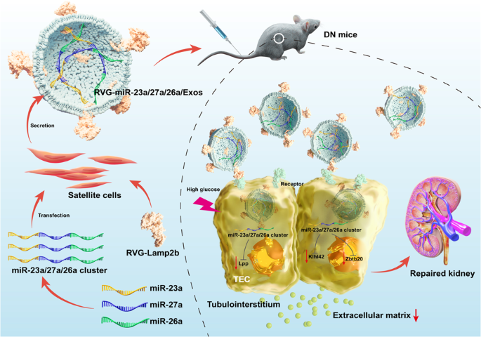 Ji, Jl., Shi, Hm., Li, Zl. et al. Satellite cell-derived exosome-mediated delivery of microRNA-23a/27a/26a cluster ameliorates the renal tubulointerstitial fibrosis in mouse diabetic nephropathy. Acta Pharmacol Sin 44, 2455–2468 (2023). https://doi.org/10.1038/s41401-023-01140-4