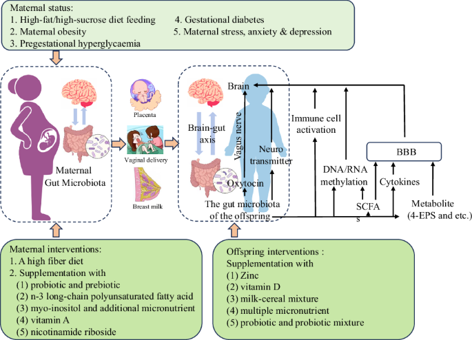 Liu X, Li X, Xia B, Jin X, Zou Q, Zeng Z, et al. High-fiber diet mitigates maternal obesity-induced cognitive and social dysfunction in the offspring via gut-brain axis. Cell Metab. 2021;33:923–938 e6.