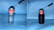 The experimental model described by Myers and Montgomery [21] was used in this study. The stoppers of Eppendorf tubes were removed, and tubes were numbered and weighed using an analytical balance (Adam Equipment Co. Ltd, MK10 0BD. UK) with an accuracy of 10−4 g. Three consecutive weights were obtained for each tube, and the mean value was considered to be its initial weight (W1). A hole was created with a heated instrument in the center of the rubber stopper of each tube, and then each tooth was inserted under pressure into the rubber stopper and fixed at the cemento-enamel junction using cyanoacrylate glue. A 27 G needle was placed alongside the cover as a drainage cannula to equalize the internal and external air pressure. Next, each unit including the stopper, tooth and needle, was fixed to its Eppendorf tube. The tubes were fitted into vials to hold the device during preparation. The operator was blinded from seeing the root apex during the removal procedure by covering the vial with aluminum foil. Samples were randomly divided using (https://www.randomizer.org) into three equal experimental groups (n = 16) as follows;