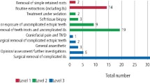 In response to these changes in practising behaviours, the NHS in England has developed commissioning guidance for oral surgery and has designated low to medium complexity cases, called Level 1 (e.g., extraction of erupted teeth, and uncomplicated third molars) as being commensurate with the level of experience expected of a dental practitioner in primary care [1]. Level 2 is designated for more complex cases which require enhanced skills and training in oral surgery (e.g., surgical removal of uncomplicated third molars requiring bone removal and soft tissue surgery) and Level 3 denotes complex oral surgery where there is an increased risk of complications, and therefore a registered specialist is required to perform the procedure and typically requires additional equipment and a hospital environment to manage the care safely (please refer to the clinical guideline for a comprehensive list of procedures in each level) [1].