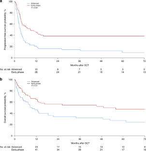 113 patients were included [77 MF (68%)]; 61 (54%) were in complete or partial remission, 86 (76%) received reduced-intensity protocols and 44 (39%) an URD allo-HSCT. With a median follow up for surviving patients of 73 months, allo-HSCT resulted in an estimated overall survival (OS) of 38% at 5 years, and a progression-free survival (PFS) of 26% at 5 years. Multivariate analysis demonstrated that advanced-phase disease (complete remission/partial remission >3, primary refractory or relapse/progression in patients that had received 3 or more lines of systemic treatment prior to transplant or the number of treatment lines was not known), a short interval between diagnosis and transplant (<18 months) were independent adverse prognostic factors for PFS; advanced-phase disease and the use of URDs were independent adverse prognostic factors for OS.