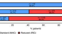 Martino R, de Wreede L, Fiocco M, van Biezen A, von dem Borne PA, Hamladji RM, et al. Comparison of conditioning regimens of various intensities for allogeneic hematopoietic SCT using HLA-identical sibling donors in AML and MDS with <10% BM blasts: a report from EBMT. Bone Marrow Transplant. 2013;48:761–70. https://doi.org/10.1038/bmt.2012.236.