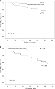 Characteristics and risk factors (RFs) of community-acquired respiratory virus (CARV) infections after umbilical cord blood transplantation (UCBT) are lacking. We retrospectively analyzed CARV infections in 216 single-unit myeloablative UCBT recipients. One-hundred and fourteen episodes of CARV infections were diagnosed in 62 (29%) patients. Upper respiratory tract disease (URTD) occurred in 61 (54%) whereas lower respiratory tract disease (LRTD) in 53 (46%). The 5-year cumulative incidence of CARV infection was 29%. RFs for developing CARV infections were: prednisone-based graft-versus-host disease (GVHD) prophylaxis and grade II–IV acute GVHD. RFs analysis of CARV progression to LRTD identified 2007–2009 period and absolute lymphocyte count (ALC) < 0.5 × 109/L. ALC < 0.5 × 109/L had a negative impact on day 60 mortality in both overall CARV and those with LRTD, whereas proven LRTD was associated with higher day 60 mortality. CARV infections had a negative effect on non-relapse mortality. Overall survival at day 60 after CARV detection was significantly lower in recipients with LRTD compared with URTD (74% vs. 93%, respectively). In conclusion, CARV infections after UCBT are frequent and may have a negative effect in the outcomes, in particular in the context of lymphocytopenia.