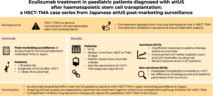 Ito, S., Saito, A., Sakurai, A. et al. Eculizumab treatment in paediatric patients diagnosed with aHUS after haematopoietic stem cell transplantation: a HSCT-TMA case series from Japanese aHUS post-marketing surveillance. Bone Marrow Transplant 59, 315–324 (2024). https://doi.org/10.1038/s41409-023-02161-7