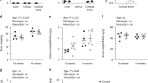 Data were analyzed using SigmaPlot. All data was plotted as box and whiskers. Box boundaries indicate 25th to 75th percentile, with lines indicating minimum to maximum, and individual values included as dots. Male and female data were analyzed separately, and differences were evaluated either by Student’s t-test for male samples or by one-way ANOVA, with post-hoc analysis using Holm-Sidak method for multiple comparisons versus the wild type group for normally distributed data from female mice. For data that failed the Shapiro-Wilk normality or Brown-Forsythe Equal Variance Test tests, the Mann–Whitney Rank Sum Test and Kruskal–Wallis One Way Analysis of Variance on Ranks (Dunn’s method for multiple comparisons versus the wild type group) were used for male and female data, respectively. Significant and non-significant P values, as well as t-values and degrees of freedom for t test, and P and F values for one-way ANOVA analyses are included in Tables S1–6. Differences were considered significant when P < 0.05.