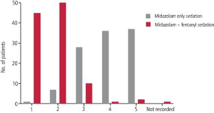 Results Of the 109 cases included, the majority of patients who had fentanyl (90.8%) had a history of unsuccessful sedation with midazolam. A lower average dose of midazolam was administered when fentanyl was used; the difference was statistically significant (p <0.0001). A higher proportion of patients who had fentanyl and midazolam presented with lower Ellis scores (better operating condition) compared to midazolam-only sedation. No adverse incidents were recorded.