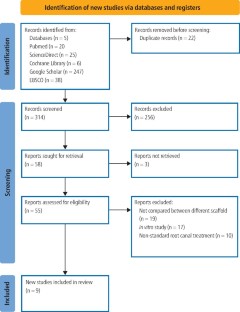 Results In total, 336 studies were yielded, while nine were included after screening. Hydrogel-based scaffolds were compared to non-hydrogel-based scaffolds.