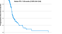 The relationships between clinicopathological characteristics, including PD-L1 or MMR status of tissue samples and tumour-response status, were analysed using the chi-square test for categorical variables. Progression-free survival (PFS) was defined as the interval from the date of the first administration of nivolumab to the date of disease progression or death from any cause. OS was defined as the interval from the date of the first administration of nivolumab to the date of death due to any cause. Survival rates were estimated using the Kaplan–Meier method and were compared with the log-rank test. The prognostic variables that were significantly associated with PFS in the univariate analyses were further assessed in multivariate Cox proportional hazard model analyses. P < 0.05 was considered to indicate statistical significance. Analyses were performed with SPSS software, version 22.0 (IBM Corp., Armonk, NY, USA).