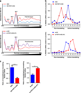 TRAP assay and intratibial injection were carried out to evaluate the role of FGF14-AS2 in BCa bone metastasis in vitro and in vivo. Polyribosome profiling was done to examine the translation level. RNA pulldown combined with LC/MS was performed to identify the lncRNA-binding partner, RIP, dual-luciferase assay, and Co-IP assays as well to testify these physical interactions. The prognostic value of FGF14-AS2 expression level in BCa patients was analysed using Kaplan–Meier Plotter.