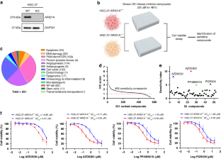 A kinase inhibitor library containing 551 compounds was screened in ARID1A isogenic GC cells for the ability to induce synthetic lethality effect. Selected hits’ activity was validated, and the mechanism of the most potent candidate drug, AKT inhibitor AD5363 (capivasertib), on induction of the synthetic lethality with ARID1A deficiency was investigated.