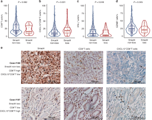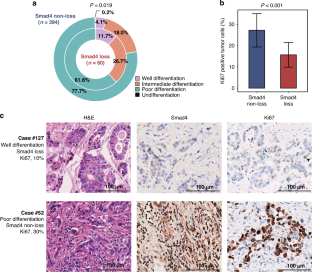 In ZSHS cohort, 60/454 GC patients harbored Smad4-loss are characterized by lower pN stage, well histology differentiation, lower EBV infection, null p53 staining and lower tumor proliferation. Smad4-loss GC patients exhibit miserable overall survival across ZSHS cohort and TCGA cohort. Moreover, Smad4-loss GC patients yield no impact on adjuvant chemotherapy, poor outcome upon anti-PD-1 immunotherapy or anti-HER-2 therapy. Interestingly, Smad4-loss GC show more well and intermediate differentiation and lower Ki67 staining. Furthermore, Smad4-loss GC exhibit tumor immunosuppressive contexture characterized with enriched CXCL13+CD8+T cells, reduced IFN-γ+ cells and GZMB+ cells infiltration.