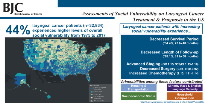 Fei-Zhang, D.J., Cuenca, C.M., Haskins, A.D. et al. Assessments of social vulnerability on laryngeal cancer treatment & prognosis in the US. Br J Cancer 133, 248–254 (2025). https://doi.org/10.1038/s41416-025-03056-8