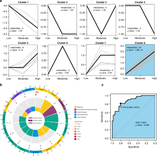 One hundred lung cancer patients undergoing chemotherapy were involved in this cross-sectional study. During their third to fifth chemotherapy, they were asked to complete questionnaires that evaluated the condition of fatigue, pain, and sleep disturbance. Patients were categorized into high, moderate, and low core symptom cluster groups using the K-means algorithm. Comparison was conducted on demographic data, symptoms, and symptom interference among groups. Plasma samples from patients were collected for untargeted metabolomics, and the differential metabolites among groups were identified. Pathway enrichment analysis was performed to understand the potential mechanism of the core symptom cluster. Trend analysis was conducted on the differential metabolites to identify the significant clusters of metabolites with similar variation among groups. Receiver Operating Characteristic curves were generated to evaluate the distinguish efficacy of the metabolites panel for the core symptom cluster.