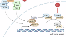 The KRASG12C mutation, which can be directly targeted by G12C-specific KRAS inhibitors, is found in only ~1% of pancreatic ductal adenocarcinoma (PDAC) patients [20, 21]. Clinical approval of inhibitors for other KRAS mutations or of non-covalent pan-KRAS inhibitors is still pending [22,23,24]. In clinical trials for non-small cell lung cancer (NSCLC), additional mutations in KRAS, NRAS, or mitogen-activated protein kinase (MAPK) pathways are frequently observed [25,26,27], underscoring the need for alternative therapeutic strategies for PDAC that do not rely solely on direct targeting of oncogenic drivers. Besides the transactivation of cyclin D1 promoter by RAS signaling, PDACs commonly harbor deletions or inactivating mutations of cyclin-dependent kinase inhibitor 2 A (CDKN2A), resulting in de-repression of cyclin–CDK4/6 complexes [20]. Consequently, PDAC cells are often highly dependent on cyclin D1–CDK4/6 activity. Nevertheless, CDK4/6 inhibitor monotherapy has shown limited efficacy in PDAC [28, 29].
