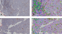 A total of 28 HCC tissues were subjected to immunohistochemistry (IHC) of 14-3-3ζ and were divided into 14-3-3ζhigh group (n = 14) and 14-3-3ζlow group (n = 14) (cut-off by median 14-3-3ζ expression level—relative integrated optical density (IOD) value of 14-3-3ζ assayed by western blot compared to that of GAPDH) (Fig. 2a). Analysis on clinicopathological features indicated that high-expression of 14-3-3ζ was associated with larger tumor size, poor tumor differentiation and terminal TNM stage (Table 1). The mRNA levels of the inflammatory cytokines (IFN-γ, IL-12, IL-2) and anti-inflammatory cytokines (TGF-β, IL-10, and IL-4) were assayed in TILs isolated from both groups (14-3-3ζhigh and 14-3-3ζlow). Interestingly, compared with 14-3-3ζhigh TILs, 14-3-3ζlow TILs expressed much higher levels of inflammatory cytokines but lower levels of anti-inflammatory cytokines (Fig. 2b).