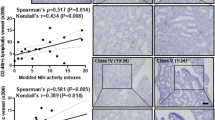 Histology was assessed following periodic acid-Schiff (PAS) and Masson’s trichrome staining. The mesangial matrix and glomerular tuft areas were quantified for each glomerular cross-section using PAS-stained sections as previously reported16. More than 30 glomeruli, cut through the vascular pole, were counted per kidney and the average was used for analysis. A finding of tubulointerstitial fibrosis was defined as a matrix-rich expansion of the interstitium in Masson’s trichrome-stained sections.