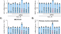 In hFOB1.19 osteoblastic cells forced overexpression of miR-3175 (“OE-miR-3175”, see Fig. 1) increased Nrf2 protein (Fig. 2O) but not Nrf2 mRNA (Fig. 2P). Keap1 protein was again unchanged (Fig. 2O). mRNA levels of Nrf2-ARE-dependent genes, HO1, NQO1, and GCLC, were significantly increased in OE-miR-3175-hFOB1.19 cells (Fig. 2Q). Thus, miR-3175 activated Nrf2 signaling cascade in hFOB1.19 cells.
