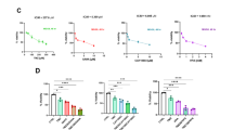 Results in graphs are expressed as means ± SD, as indicated in the Figure legends, for the indicated number of observations. Numerical data of two independent samples were analyzed with Student’s t test (two-tailed, unequal variance). Numerical data of multiple independent samples were analyzed with ANOVA. The tumor volume data were analyzed by a repeated-measure ANOVA. Animal survival time was analyzed by Kaplan–Meier process. Significance was defined as P < 0.05.