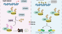 To investigate whether the effects on NSCLC cells were mainly derived from targeting OTUD3, we knocked down OTUD3 in H1299 cells (Fig. 3A). Then, using the OTUD3 knockdown cells, we performed the same series of experiments previously performed. The CCK-8 assay results showed that compared with the control, the inhibitory effect on cell proliferation was significantly reduced in OTUD3 knockdown cells (Fig. 3B). Similarly, OTUDin3 had a weaker impact on colony formation in OTUD3 knockdown cells (Fig. 3C). Wound healing and Transwell assays showed that OTUD3 knockdown cells were less sensitive to OTUDin3 compared with the control (Fig. 3D, E). The results of apoptosis assay showed that OTUD3 knockdown cells were less responsive to OTUDin3, which was consistent with the above results (Fig. 3F, Supplementary Fig. 3A). However, we observed that OTUDin3 still inhibited cell growth after OTUD3 knockdown. We speculated that it may be due to low knockdown efficiency. Therefore, we constructed OTUD3 knockout (KO) cell line using the CRISPR/Cas9 technology (Supplementary Fig. 3B), and then performed CCK-8 assays. The results showed that OTUDin3 had less inhibitory effect on the OTUD3 KO cells than on the OTUD3 knockdown cells (Supplementary Fig. 3C). While OTUDin3 inhibited about 50% of OTUD3 wild-type (WT) cells at a concentration of 10 μM, it had little inhibitory effect on OTUD3 KO cells (Supplementary Fig. 3C). Taken together, these results demonstrated that OTUDin3 inhibited lung cancer cell growth, migration and invasion, and induced apoptosis by targeting OTUD3.