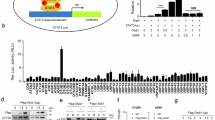 A previous study showed that the N-terminal OTU domain of OTUD3 mediated the physical interaction with GRP78 [26]. Given that OTUDin3 binds to the OTU domain, we further investigated whether OTUDin3 disrupted the interaction between OTUD3 and GRP78 by performing co-IP and GST-pulldown assays. Co-IP and GST-pulldown assays confirmed that OTUDin3 did not affect the interaction between OTUD3 and GRP78 (Fig. 4F, Supplementary Fig. 4A). In addition, OTUD3 formed homodimers to perform deubiquitinating activity [23]. Co-IP and GST pull-down assays showed that OTUDin3 also did not affect the dimerization of OTUD3 (Fig. 4G, Supplementary Fig. 4B).
