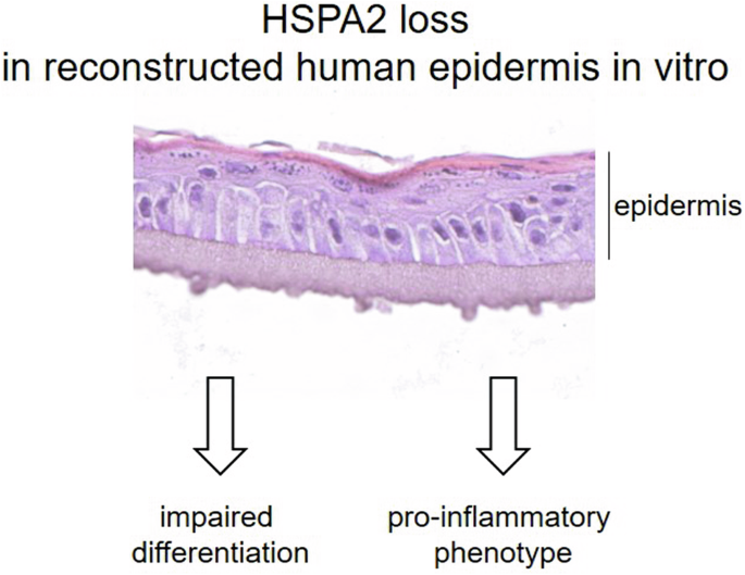 HSPA2 is essential for sperm differentiation and function [20], but its role in extratesticular cells is not well understood [2]. We have recently shown that downregulation of the HSPA2 gene in immortalized human keratinocytes affects their clonogenic potential and the expression of differentiation markers, indicating a defect in keratinocyte differentiation [18]. This finding was intriguing, given that the function of HSPAs in the epidermis has been rather associated with protection against environmental stresses, so far [21, 22].