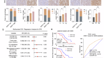 We evaluated the expression levels of OTUB1 in the in-house 86-paired PC samples. When PC tissues were compared to the neighboring normal tissues, there was a clear increase in the mRNA and protein levels of OTUB1 (Fig. 1D, E). Consistent with these findings, IHC data revealed that OTUB1 was elevated in 67.4% (58/86) of the PC tissue specimens (Fig. 1F, G). Next, we evaluated the relationship between the clinical characteristics and OTUB1 expression patterns in patients with PC. The data revealed that high-OTUB1 levels had a positive association with TNM stage (P = 0.0027), tumor size (P = 0.0213) and Differentiation (P = 0.0002) (Table 1). In addition, multivariate Cox regression analysis showed that high-OTUB1 level was an independent prognostic factor for poor survival of patients with PC (Table 2). Kaplan–Meier analysis showed that, in line with the findings from the TCGA database, patients with PC having high-OTUB1 expression had a considerably shorter overall survival (OS) time than those with low-OTUB1 expression (Fig. 1H, I). Overall, the findings indicate that elevated OTUB1 expression is strongly associated with poor clinical prognosis in patients with PC.