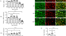 Skeletal muscle biopsies positive for myoD expression (Supplementary Fig. 1Sa) were obtained from 20 healthy subjects and split into two groups, old (>58 years; mean age 72.6) and young (< 58 years; mean age 46.5). The WB analysis in Fig. 1a shows that lysate proteins derived from young subject’s (ys) biopsies express higher levels of AR, as compared with older subjects (os). Using the same lysate samples, we then analyzed the expression of the cyclin-dependent kinase inhibitor (CDKI) p16, a regulator of the senescence program [42]. The WB analysis reveals higher expression of p16 in os, as compared with ys subjects (Fig. 1a). Spearman’s rank correlation shows a significant negative correlation between AR expression, which was normalized using tubulin levels, and age (r = −0.7979; P < 0.0001; Fig. 1b).