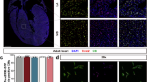Immunofluorescence staining was performed as previously described [37, 45]. After being fixed in 4% polyformaldehyde for 30 minutes, frozen slices of cardiac tissues (3.5 mm) and cultured cells were permeabilized in 1% Triton X-100 PBS for 10 minutes and blocked with 1% bovine serum albumin (BSA) for 1 hour at room temperature. After that, the samples were incubated overnight at 4 °C with primary antibodies including anti-Ki67 antibody (1:100, ab16667, Abcam, Cambridge, UK), anti-p-Histone H3 (pH3) antibody (1:100, ab47297, Abcam, Cambridge, UK), anti-cTnT (1:50, ab8295, Abcam, Cambridge, UK), β-actin (1:100, 20536-1-AP, Proteintech, Wuhan, China), anti-aurora B (1:100, ab2254, Abcam, Cambridge, UK), anti-CD31 (1:100, ab222783, Abcam, Cambridge, UK), anti-CD105 (1:100, ab221675, Abcam, Cambridge, UK), anti-α-SMA (1:100, ab62623, Abcam, Cambridge, UK), anti-p-ATM (1:100, sc-47739, SANTA CRUZ Biotechnology, CA, USA), anti-8-oxoG (1:100, MAB3560, MilliporeSigma), anti-p21 (1:200, 28248-1-AP, Proteintech, Wuhan, China). Cells were stained with a Click-iT EdU Alexa Fluor 555 Imaging Kit (Invitrogen, CA, USA) according to the instruction manual provided by the manufacturer in order to detect EdU incorporation. Cells were processed with the use of an In Situ Cell Death Detection Kit (Roche, Shanghai, China) in order to perform TUNEL experiments. After being washed with PBS, the samples were incubated for 1 hour at room temperature with goat anti-mouse IgG/Alexa Fluor 488 (1:100, Biosynthesis, bs-0296G-A488, Beijing, China) or goat anti-rabbit IgG/Alexa Fluor 594 (1:100, Biosynthesis, bs-0295G-AF594, Beijing, China) secondary antibodies followed by 10 minutes of DAPI staining (1:500, ab104139, Abcam, Cambridge, UK). The confocal microscope (Carl Zeiss, LSM880) was utilized for the process of image acquisition. According to previous investigations, vessel density was defined as the percentage of the α-SMA-positive stained regions compared to the total tissue area in the corresponding slight field using Image-J software (Wayne Rasband).