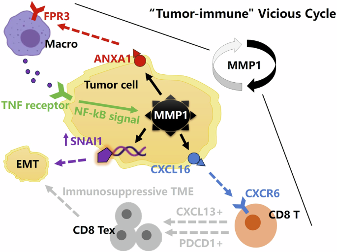 MMP1+ malignant cells’ role in the “tumor-immune” vicious cycle: insights into CXCL16-CXCR6 and ANXA1-FPR3 pathways