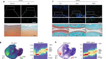 Twelve human cartilage samples were collected in the present study (Supplementary Table 1). Compared with non-OA samples, OA cartilage had a reduced expression of type II collagen (COL2A1), a key extracellular matrix (ECM) protein, and increased levels of matrix metalloproteinase-13 (MMP13), a primary matrix-degrading enzyme for COL2A1 (Fig. 1a, b). Cartilage degradation in OA samples was further supported by diminished Safranin O–Fast Green (SO&FG) staining (Fig. 1a, b). In line with these findings, PFKFB3 expression was significantly reduced in OA cartilage compared with non-OA controls (Fig. 1a, b).