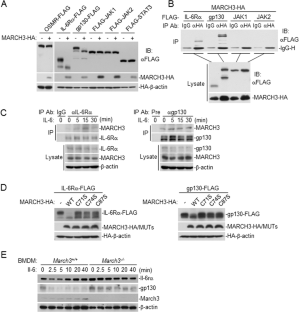 Babon JJ, Stockwell D, DiRago L, Zhang JG, Laktyushin A, Villadangos J, et al. Membrane-associated RING-CH (MARCH) proteins down-regulate cell surface expression of the interleukin-6 receptor alpha chain (IL6Ralpha). Biochem J. 2019;476:2869–82.