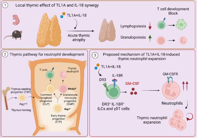 Ruiz Pérez, M., Maueröder, C., Steels, W. et al. TL1A and IL-18 synergy promotes GM-CSF-dependent thymic granulopoiesis in mice. Cell Mol Immunol 21, 807–825 (2024). https://doi.org/10.1038/s41423-024-01180-8