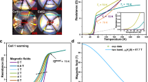 The change in the pressure-induced SC state of Y in the presence of a magnetic field at 33.4 and 48.6 GPa are displayed in Fig. 2a and b, respectively. The resistivity reveals a peak near Tc and decreases to zero for both pressures owing to the SC phase transition. A hump-like feature near Tc is often observed in disordered superconductors, which can be ascribed to the development of SC puddles surrounded by normal-state regions near Tc8,17,18. At 9 T, which is the strongest magnetic field available in this work, the SC phase at 48.6 GPa is still robust, and the onset of Tc occurs at 3.9 K. The upper critical field (Hc2) observed in Y under pressure is the highest among bulk element superconductors, suggesting that the pressurized Y metal is a type-II superconductor17,19.
