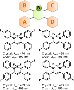 Yamaguchi M, Ito S, Hirose A, Tanaka K, Chujo Y. Modulation of sensitivity to mechanical stimulus in mechanofluorochromic properties by altering substituent positions in solid-state emissive diiodo boron diiminates. J Mater Chem C. 2016;3:5314–9.