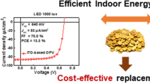 Photovoltaic devices (PVs) are widely used as solar cells in outdoor applications [11]. PVs are also capable of generating power (even though relatively low power) by harvesting artificial indoor light. Although sunlight is not available in all locations and at all times, ambient indoor lighting is always available to supply energy for operating low-power IoT devices. Unlike robust inorganic silicon-based PVs, organic PVs (OPVs) based on organic semiconductors have various inherent advantages such as light weight, flexibility, solution processability, and cost-effective large-area manufacturing capabilities [12,13,14,15,16]. Moreover, OPVs can convert weak indoor light into electricity more efficiently than silicon-based PVs because of their spectral tunability and higher optical absorptivity, as well as the lower leakage currents of organic semiconductors. These features endow OPVs with great potential for application in versatile distributed power sources that can be implemented anywhere with any shape and size compatible with the IoT. The power conversion efficiencies (PCEs) of OPVs as solar cells have recently reached over 18% (for single-junction cells) under 1-sun conditions (AM 1.5 G, 100 mW cm−2) [11, 17, 18]. However, it should be noted that high-performance OPVs under outdoor 1-sun conditions do not necessarily deliver high performance under dim-light indoor conditions. In other words, developing indoor OPVs (iOPVs) requires design guidelines different from those of conventional solar cells from the perspective of both materials chemistry and device physics [19,20,21,22,23,24,25,26,27].