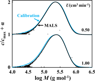 Clementi LA, Yossen MM, Vega JR. Molar mass distributions of linear homopolymers by size exclusion chromatography with light scattering detection: a method for automatic band broadening correction. J Chromatogr A. 2019;1595:136–43.