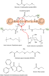 Koyanagi K, Takashima Y, Yamaguchi H, Harada A. Movable cross-linked polymeric materials from bulk polymerization of reactive polyrotaxane cross-linker with acrylate monomers. Macromolecules. 2017;50:5695–700.