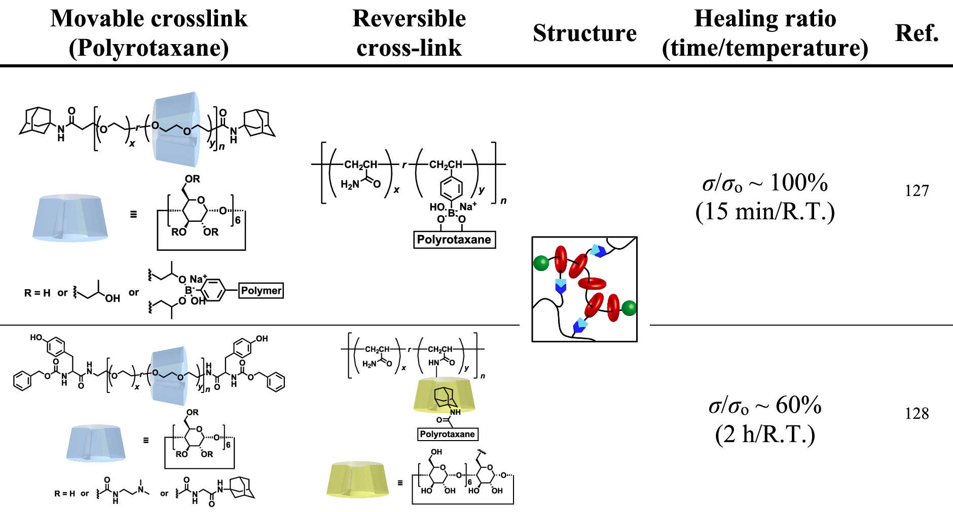 Table 5 Chemical structures, healing ratios, and healing conditions of materials with movable and reversible crosslinks