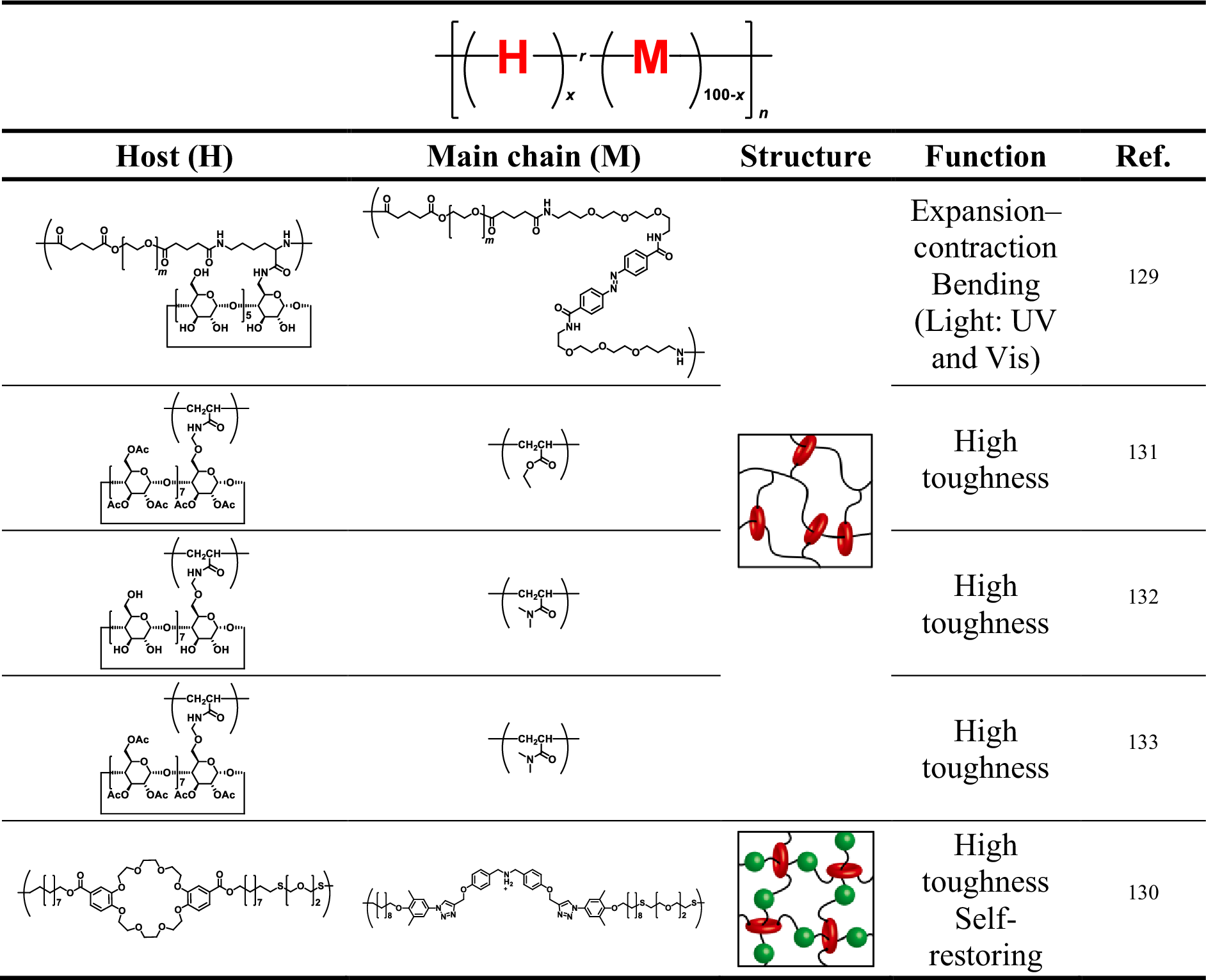 Table 6 Chemical structures and functions of movable crosslinked materials with rotaxane/polyrotaxane structures in the main chain