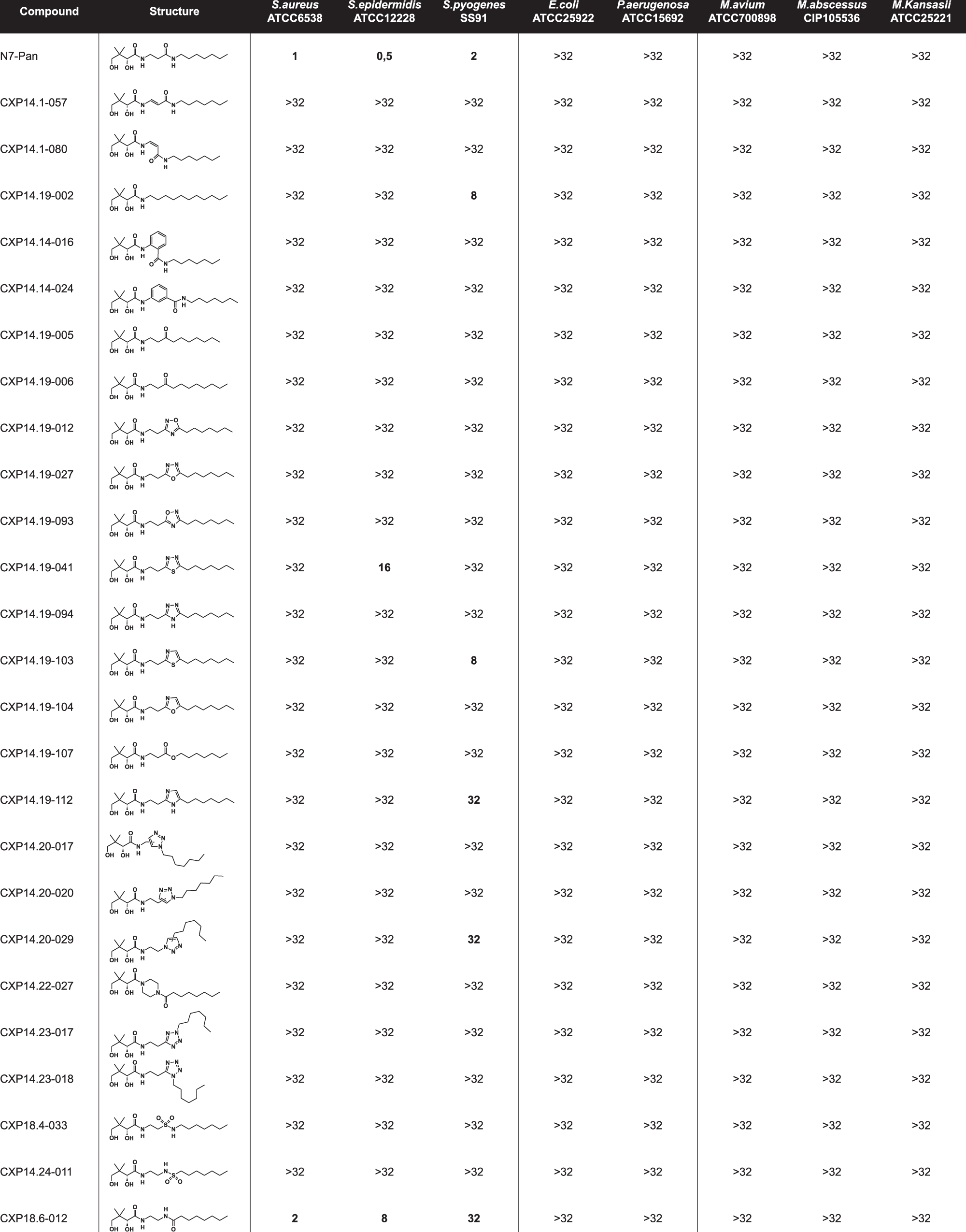 From: Stable pantothenamide bioisosteres: novel antibiotics for Gram-positive bacteria