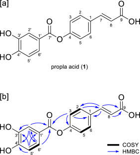 Streptomyces sp. RD007556 regenerated from protoplast was found to produce p-coumaric acid 3,4-dihydroxybenzoate, propla acid (1) which is not observed in the wild-type strain. The structure of 1 was determined by NMR and MS analyses. Compound 1 showed antioxidant activities in DPPH and superoxide dismutase-like assays.