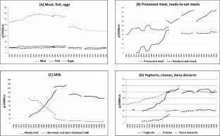 The rise of nutrition-related diseases in developed countries prompts investigation into the role played by changing food patterns. Our aim was to observe changes in food-at-home purchases by French households and their impacts on nutritional quality over the past 40 years (1969–2010).